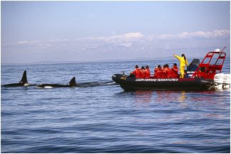 What kind of Whales does one see? Typically from April through October the most commonly viewed are the resident and transient Orcas. Also frequently spotted are Harbour seals, California sea lions, Dahl's porpoise, bald eagles, various other sea-bird species, Minke whales, Humpback whales.